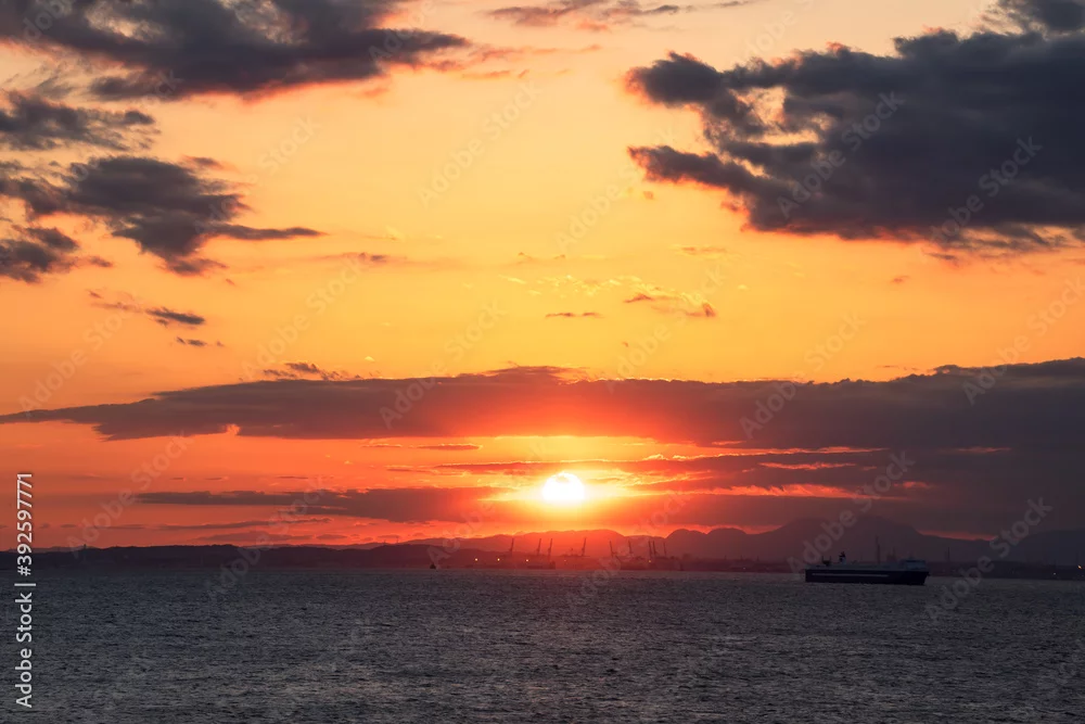 (千葉県-風景)展望デッキから望む三浦半島側のサンセット風景1