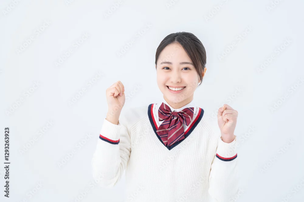 ガッツポーズの女子高生