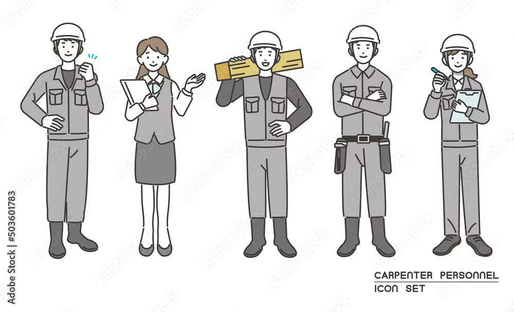 大工や職人、作業員などのベクターイラスト素材/コミュニケーション/現場監督/工事