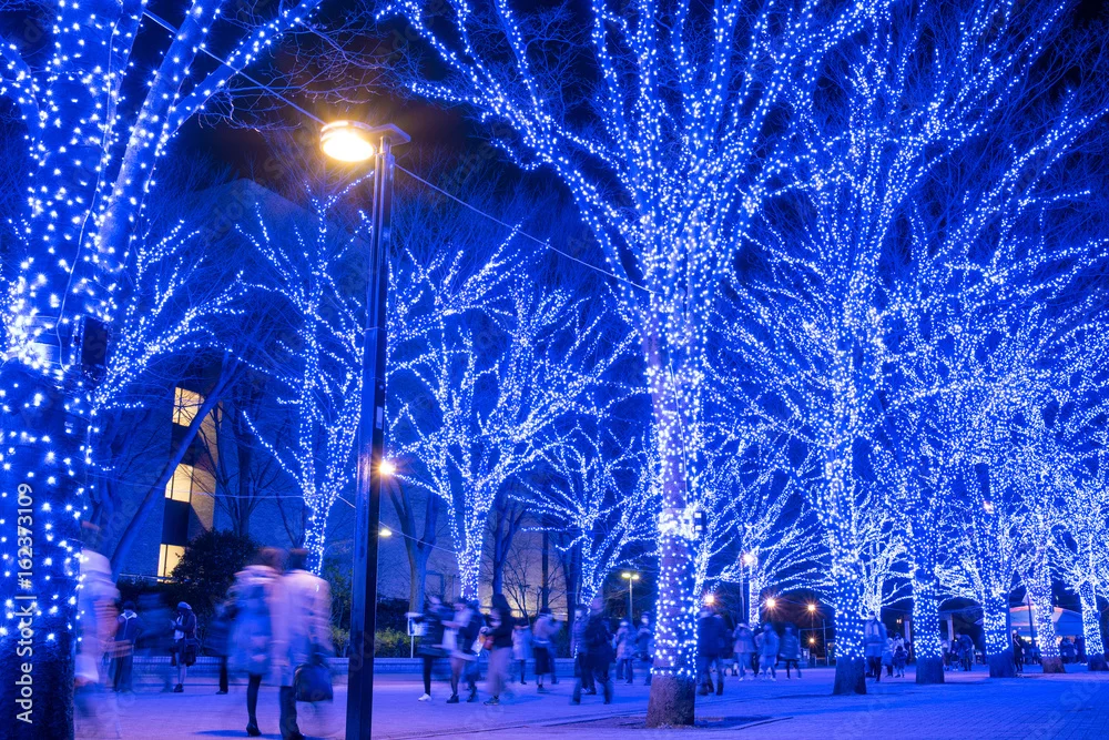 Illuminated street at Yoyogi Park in Tokyo 青の洞窟