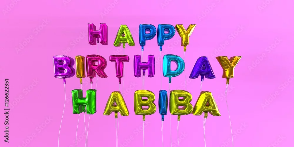 Happy Birthday Habiba card with balloon text - 3D rendered stock image. This image can be used for a eCard or a print postcard.