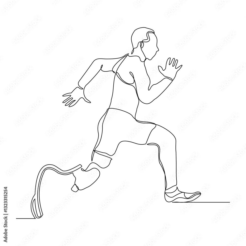 Continuous line of male amputee athlete runner with prosthetic legs run with motivation and passion competition. Single sketch drawing vector illustr ...