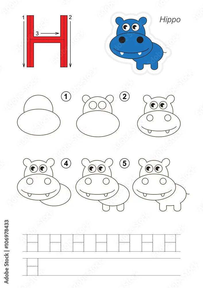 Drawing tutorial. Game for letter H