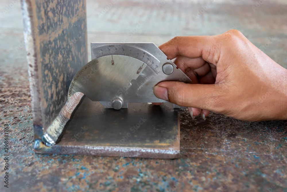 Using the welding gauge to measure the leg length of the welded.