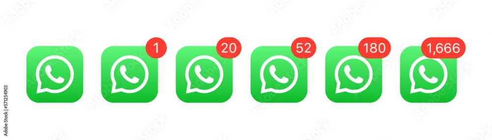 Whatsapp app logo notification counter social media button icon. whatsapp logo with red notifications badge count with numbers - social media logo. social ...