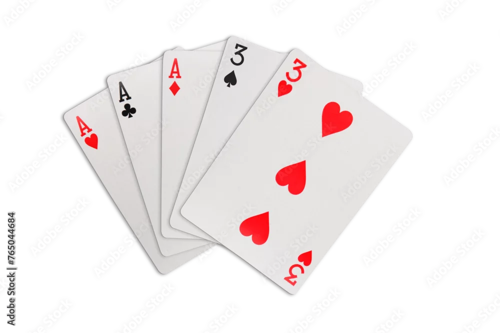 Full house playing cards on transparent background