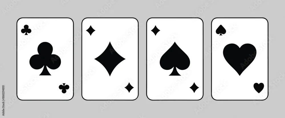 Playing card suits set with spades diamonds clubs hearts, traditional deck of poker cards isolated on gray