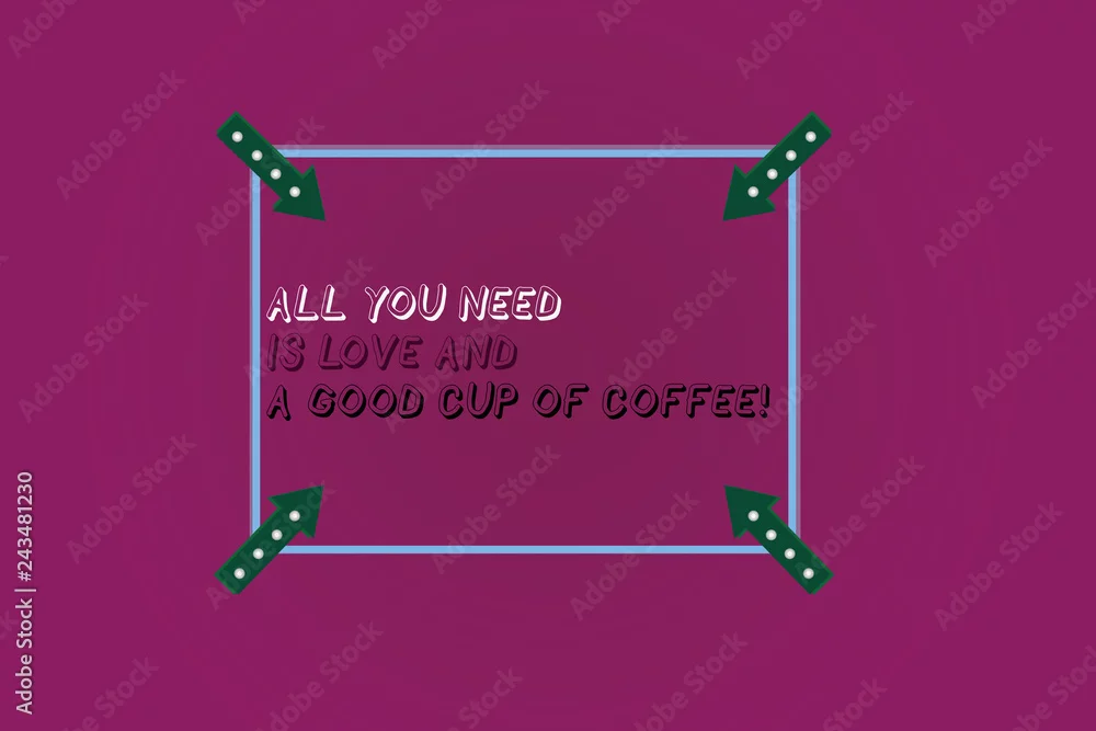 Word writing text All You Need Is Love And A Good Cup Of Coffee. Business concept for Roanalysisce with hot beverages Square Outline with Corner Arrows Pointing Inwards on Color Background