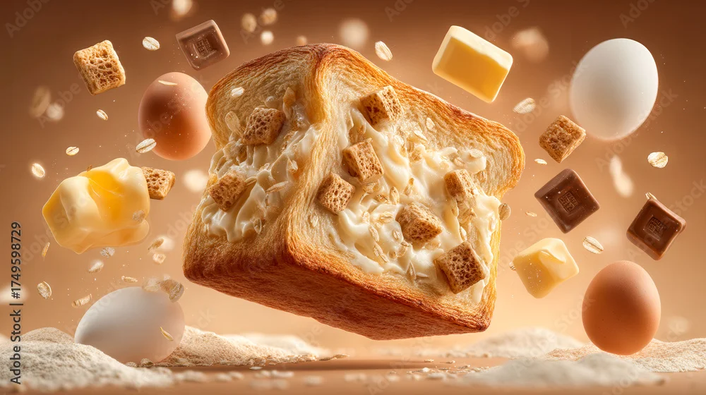 A close up of a toasted bread with a variety of toppings including chocolate chips, raisins, and nuts