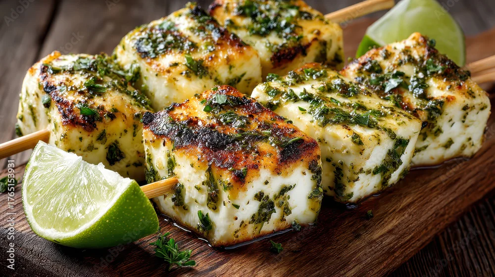 A plate of food with a bunch of lime wedges on the side. The food is a mix of meat and vegetables, and the lime wedges are used as a garnish. Scene is appetizing and inviting