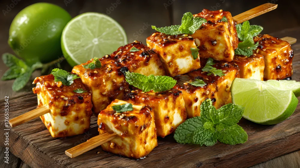 A plate of food with meat and lime on it. The lime is green and the meat is brown