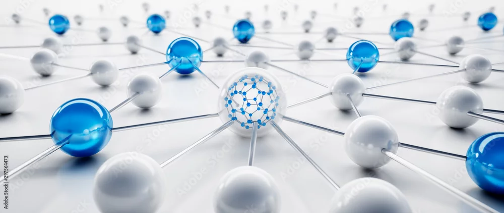 Blue and white sphere network structure - abstract design connection design - 3D illustration