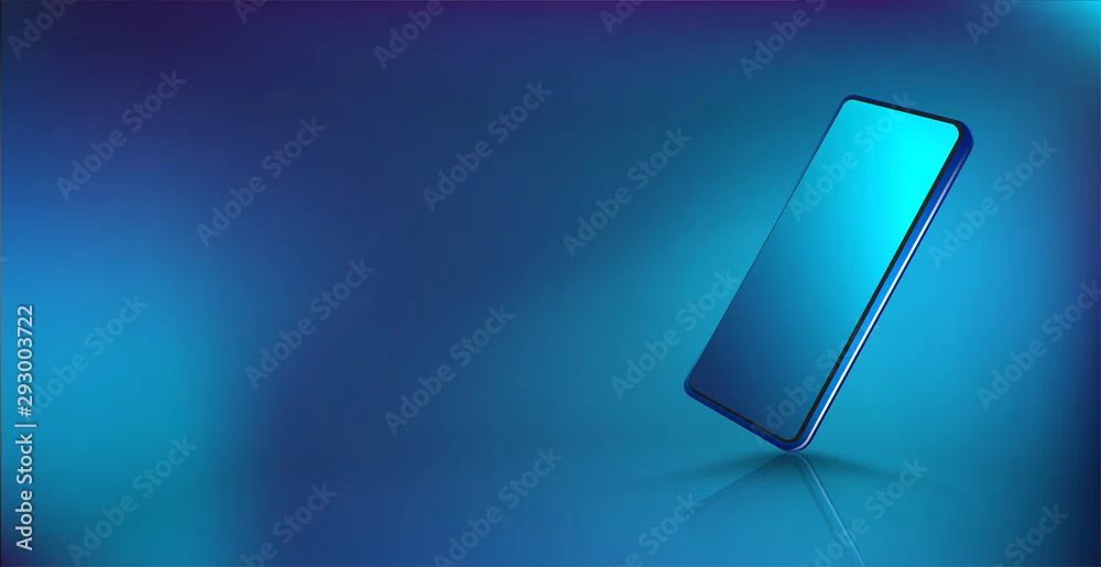 Modern smartphone mockup, isometric position. Realistic 3d illustration mobile phone. Smartphone perspective view with blank screen. UI, UX, KIT presentation. ...