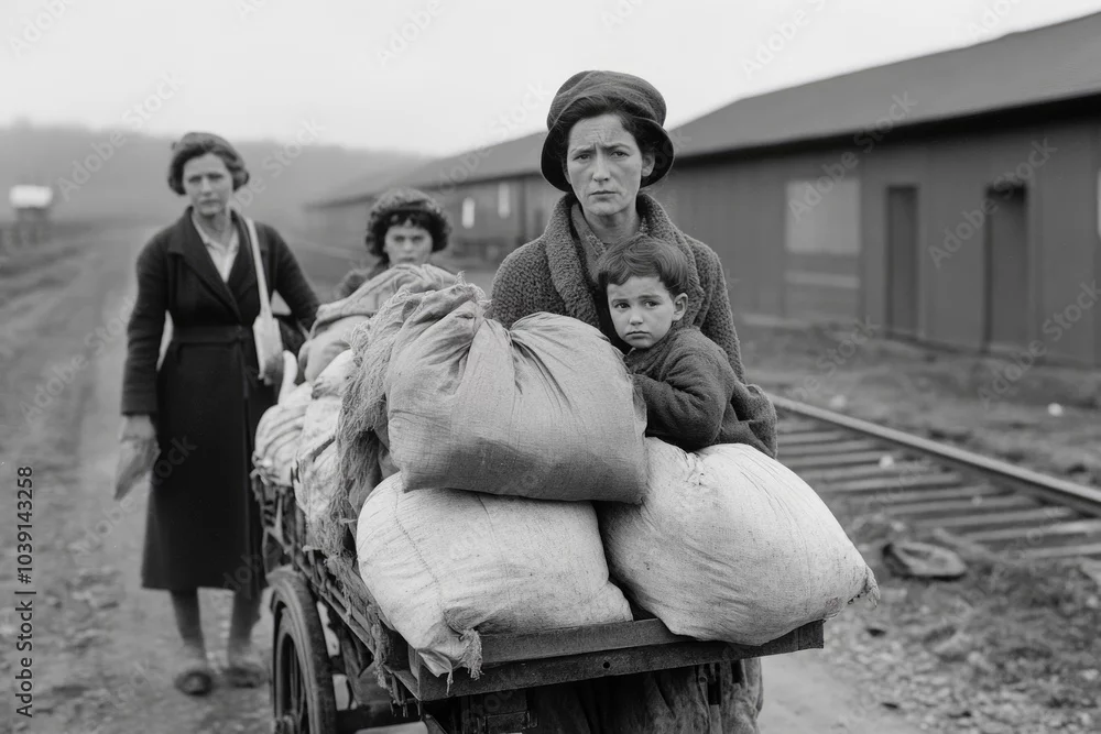 Stark portrayal - black and white depiction of Great Depression's drama, capturing intense hardship, emotional struggles, bleak realities of turbulent ...