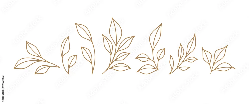 Set monochrome simple leaves botanical branches with stem and foliage vector illustration