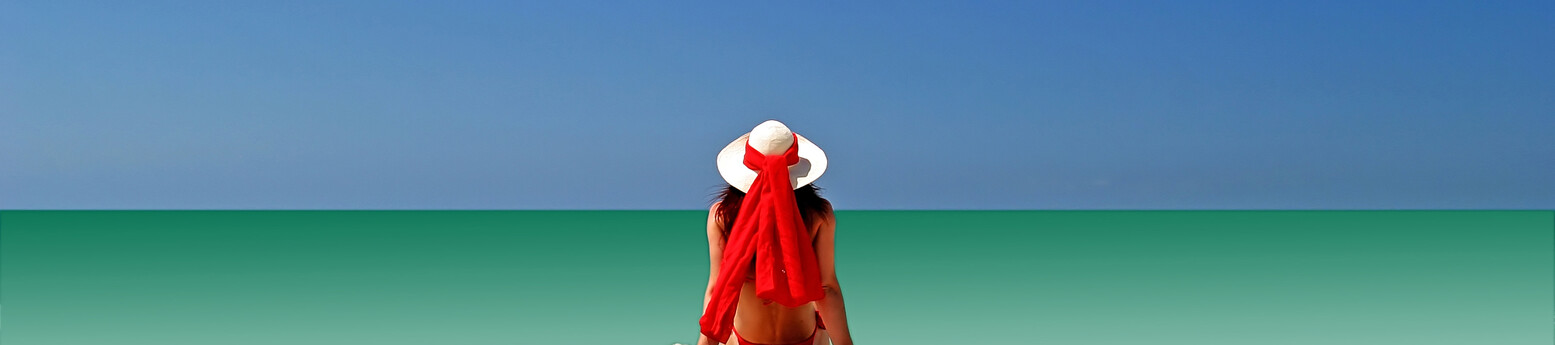 Busy Beach in the Summer With White Sand and Shallow Clear Water
