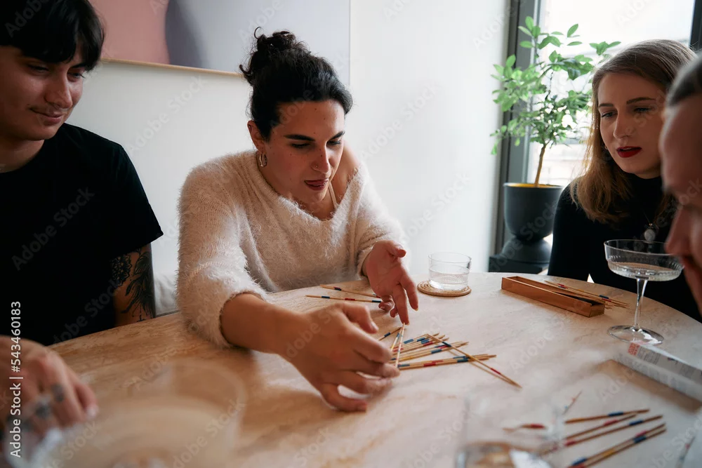 Young people playing pick up sticks