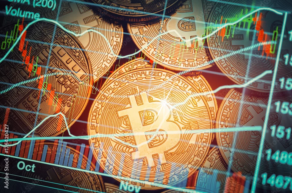 bitcoin trading market data chart. virtual cryptocurrency concept